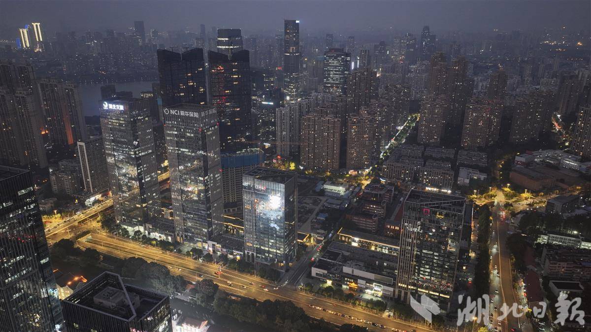晚高峰时分中北路、汉街商圈都市霓虹交织。
