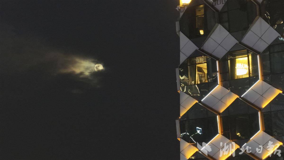 11月5日下班晚高峰,江城武汉迎来“超级月亮”。中北路、汉街商圈高楼间,圆月悄然升起,皎洁清辉洒满街道,伴引市民踏上回家路。月光与都市霓虹交织,为繁忙的下班时分带来了独特的城市浪漫。(湖北日报全媒记者 陈少哲 摄)