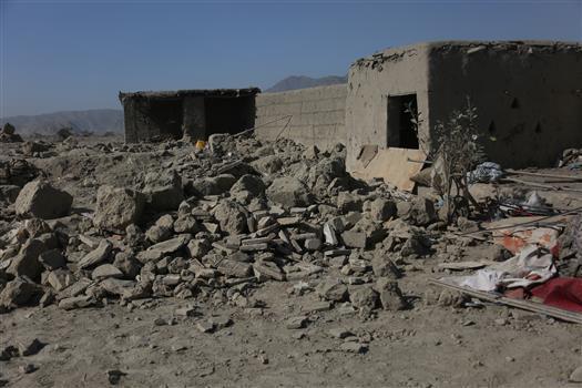 22日阿富汗东部楠格哈尔省拍摄的遭空袭后的场景 图源:新华社